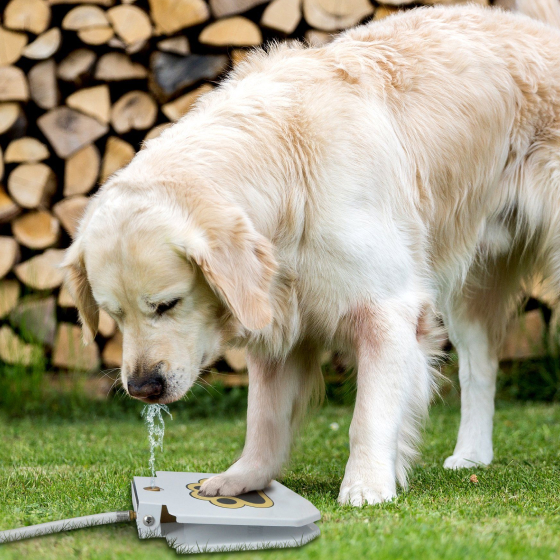 I was looking for a drinking hose/fountain for my dog and came across this one. It arrived yesterday and was very easy to hook up the hose. It will take a little patience and training but my dog loves it!