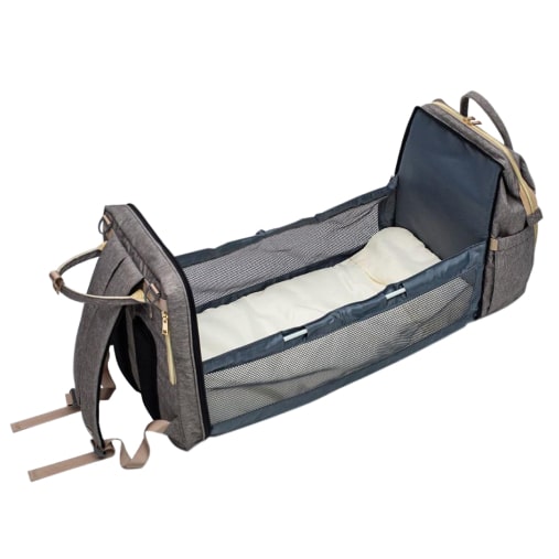 What a unique multi functional travel bag which is a combined diaper bag backpack, bassinet, nappy bag, travel crib, portable baby changing station. With insulated 3 bottle pockets, 5 compartment inside and Concealed waterproof zip pockets at the back and inside, it’s roomy enough to store all baby stuffs, included with removable changing pad/mattress. Thick, durable, machine washable material and foldable easily, this bag is an all in 1 small and light travel bag to accommodate baby needs and mom. It can be worn as shoulder bag, stylist backpack or hanging on a stroller, which makes travel more convenient and easier. I am sold with all the features this bag has and can’t wait to use it for my upcoming baby!