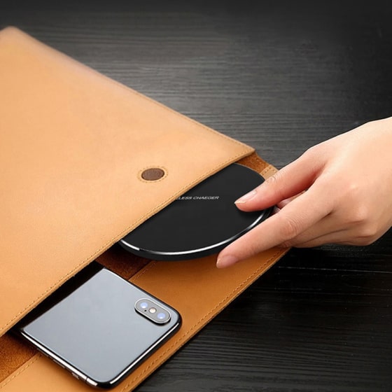 The wireless charger is made of a matte coating and an aluminum case, so it's light and easy to drain off heat with a durable material. The advantage of this charger is anti-slip design, the phone charging dock is protected and charging is stable, avoiding falling damage. Wireless charging is designed with a stable sensor, an indicator light is on when the phone is placed and is in the charging time. Good product!